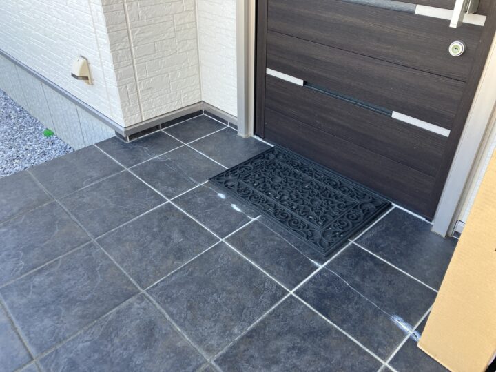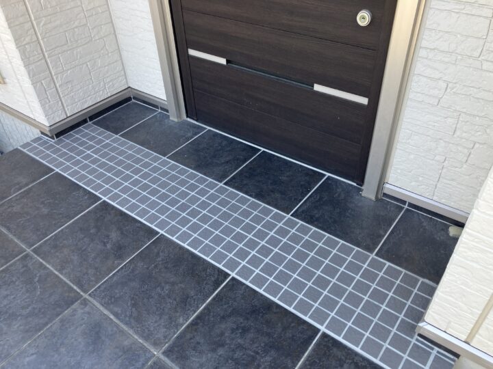 ヒビ割れて、以前から気になっていた玄関ポーチタイルも。