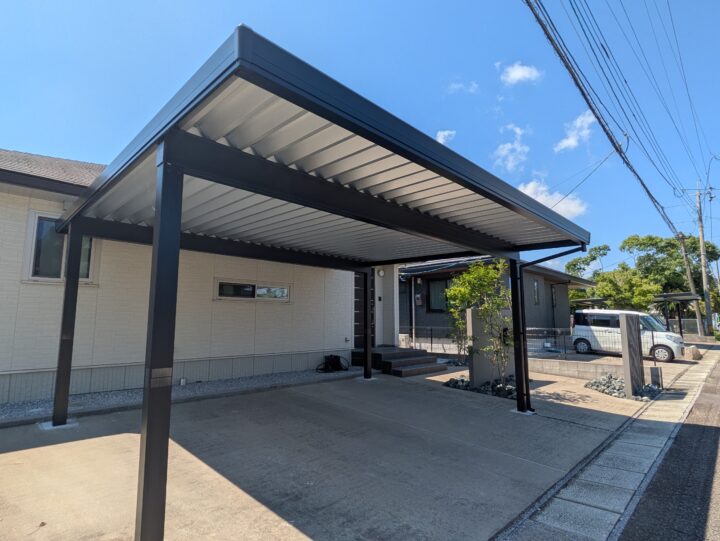 既存ポストや枕木を撤去し、門塀を設置しました。