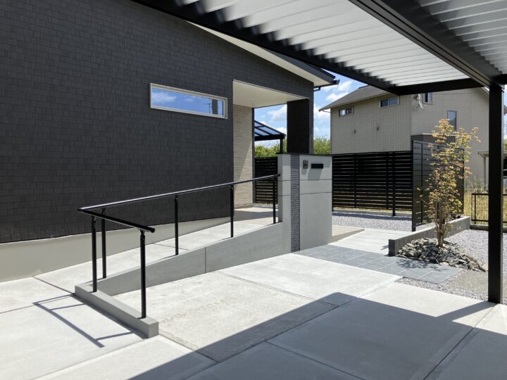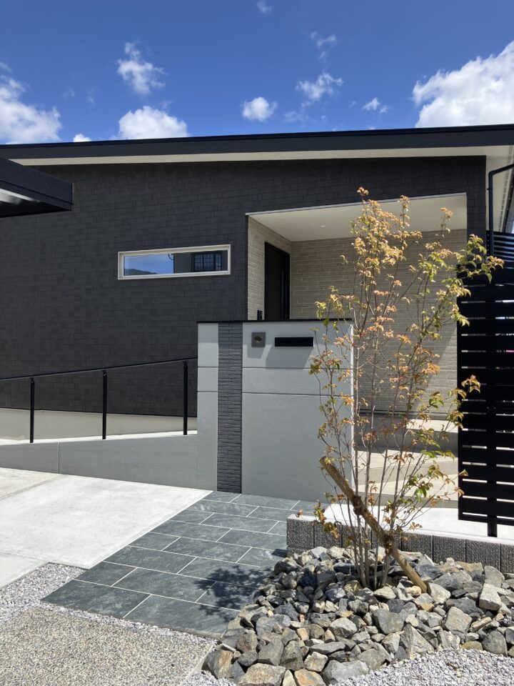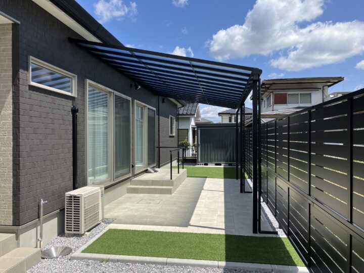 お庭は広く屋根を設置。タイルスペースもあり色々と活用できます。