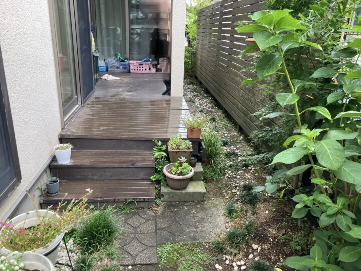 ウッドデッキ、木製のフェンスは撤去しました。