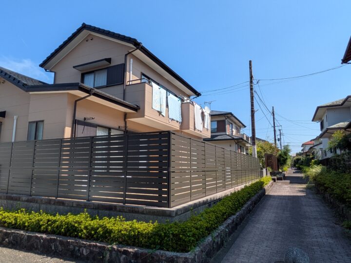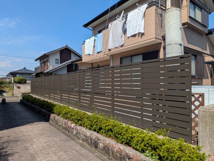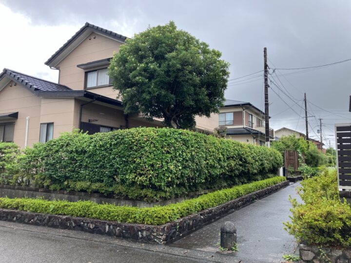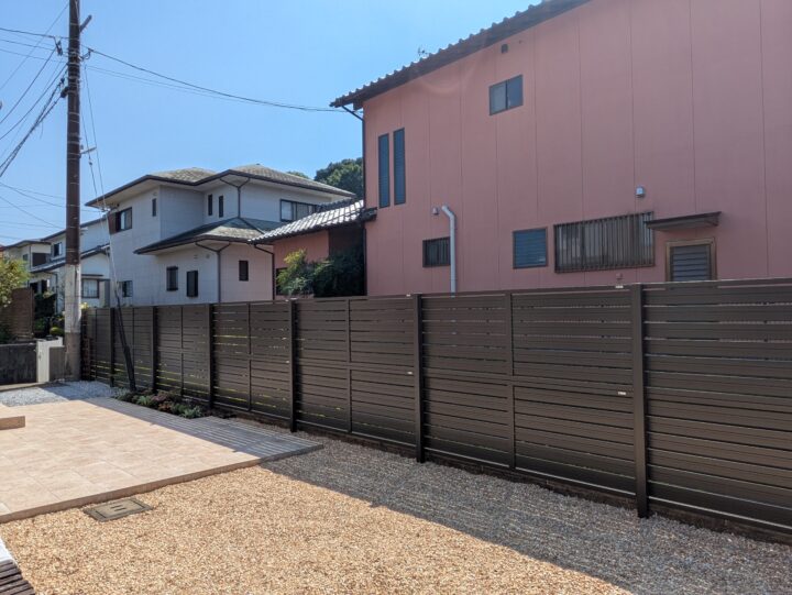生垣や大きくなりすぎて困っていた樹木を全て撤去し、フェンスを新設しました。