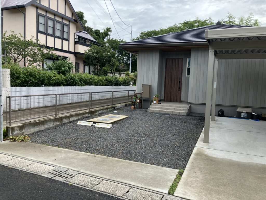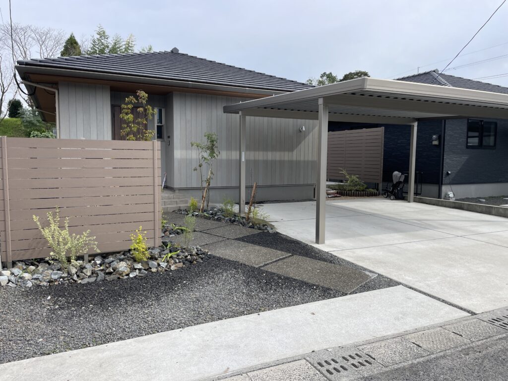 玄関周りは目隠しフェンスと植栽を取り入れ雰囲気良く仕上がりました。