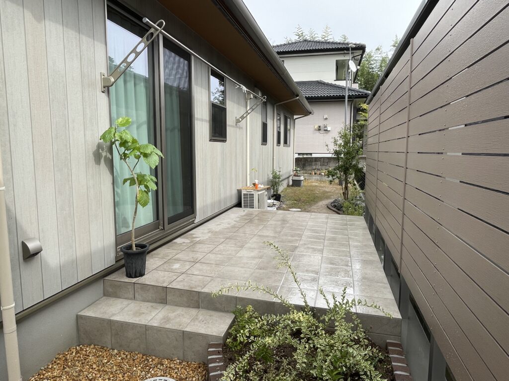 お庭はタイルテラスを延長、広々使いやすくなりました